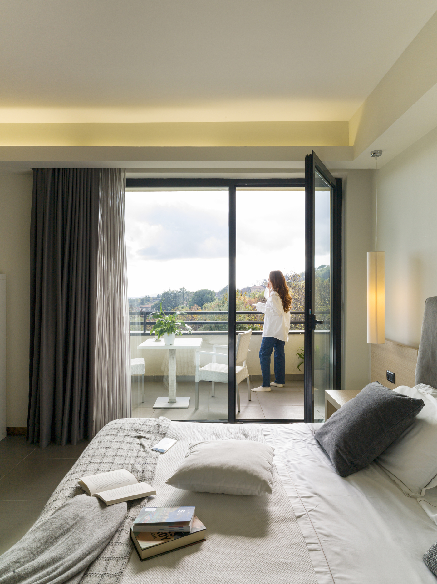 Teocle, named after the mythical founder of the city of Catania, is one of the smallest of our rooms, but no less elegant and refined. The anthracite floors, a reference to the colour of lava stone, contrast with the brightness of this room, which is perfect for an intimate and sophisticated event.